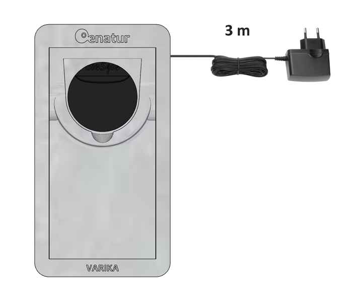 - Netzteil 9 V DC, Anschlusslänge 3 m, fertig an die Kamera angesteckt